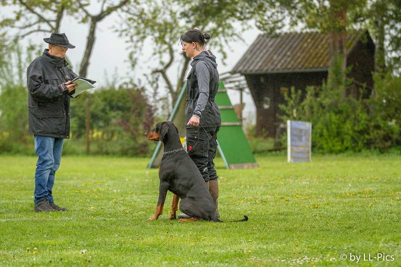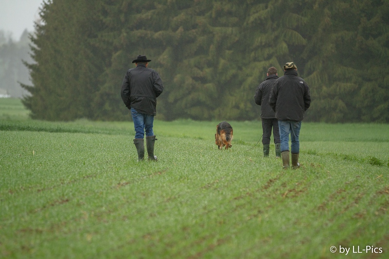Bei andauerndem teilweise starkem Nieselregen fand die diesjährige Frühjahrsprüfung des VdH Mötzingen statt. Die doch sehr unfreundlichen Wetterbedingungen verlangten sowohl Mensch als auch Hund ein hohes Maß an Können ab.
