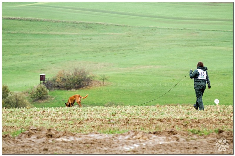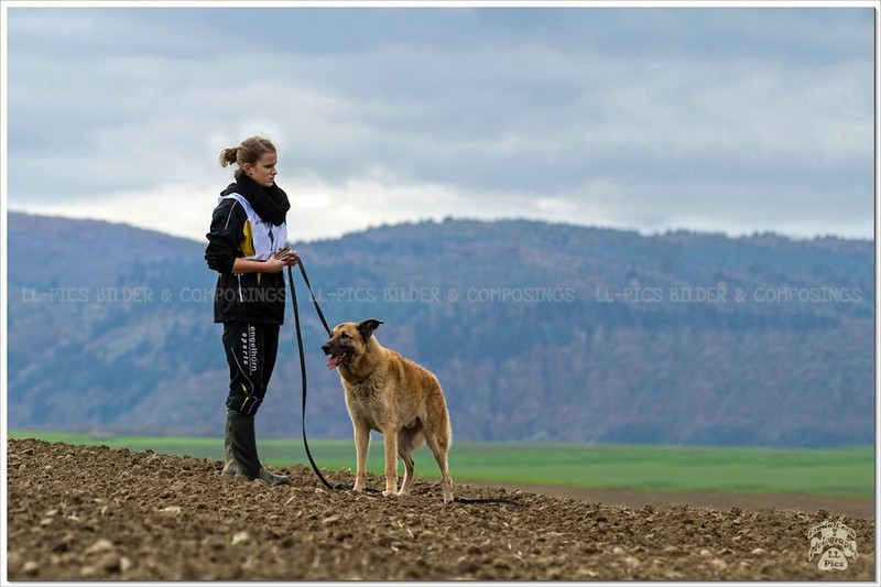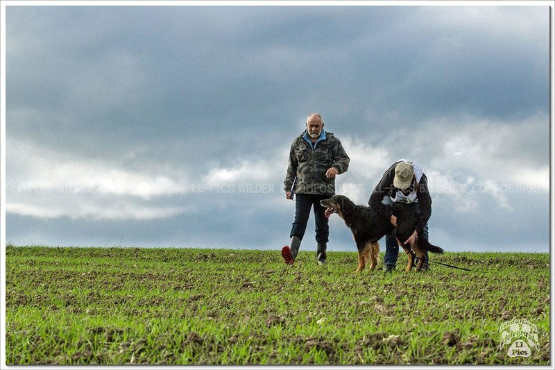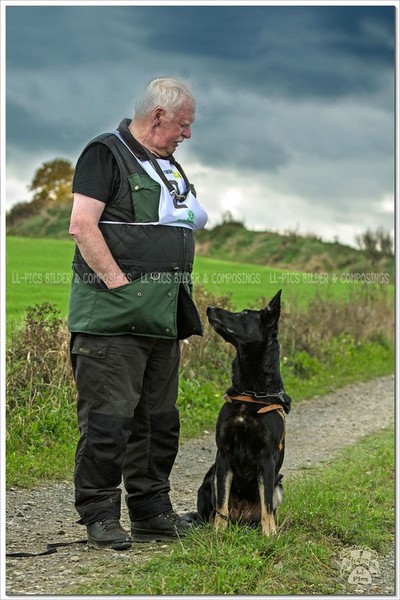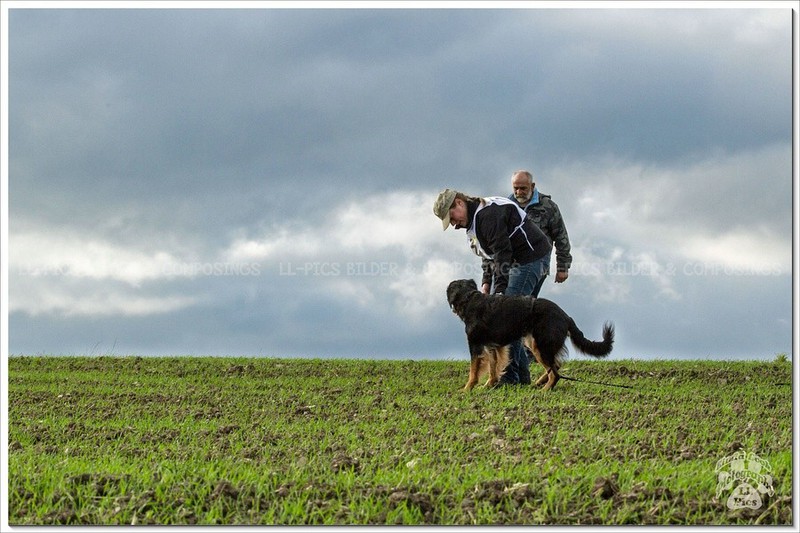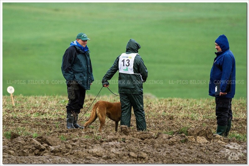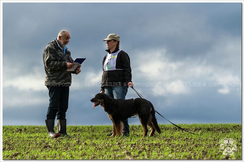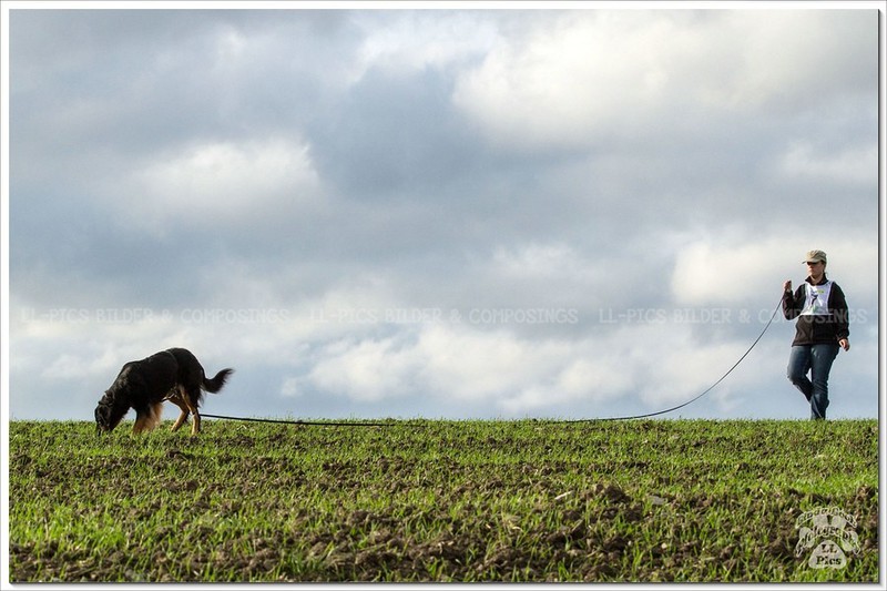 War das Wetter am Samstag nach einem morgendlichen Regenschauer noch warm und schön, so zeigte sich der Sonntag von seiner härtesten und unfreundlichsten Wetterseite. Heftige Orkanböen und starke Regengüsse erschwerten es den Hunden und Hundeführern doch sehr, sodass es schließlich nicht verwunderlich war, dass letzten Endes nur 50% der gestarteten 20 Teilnehmer die Prüfung mit einem bestandenen Ergebnis beenden konnten. Zu den Pechvögeln gehörte leider auch unsere Alexandra. Aber wie sagt man so schön: nach der Prüfung ist vor der Prüfung! Und manchmal ist es einfach nur der olympische Gedanke „dabei sein ist alles“, der uns mit Zuversicht auf den nächsten Wettkampf schauen lässt.