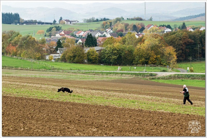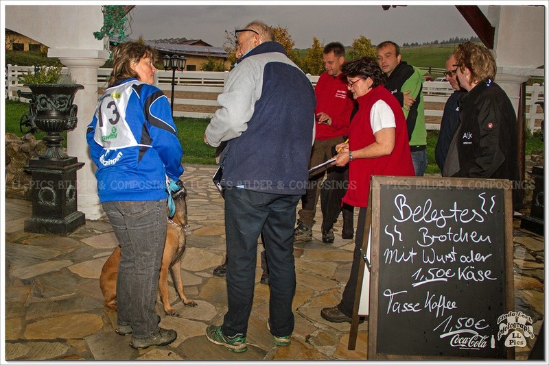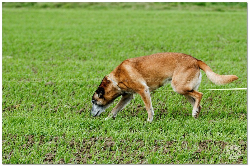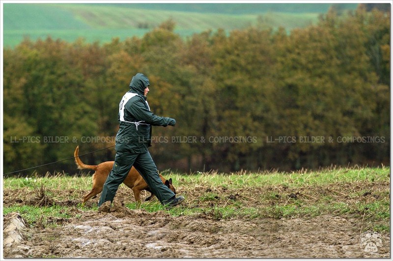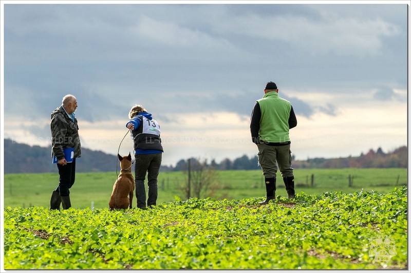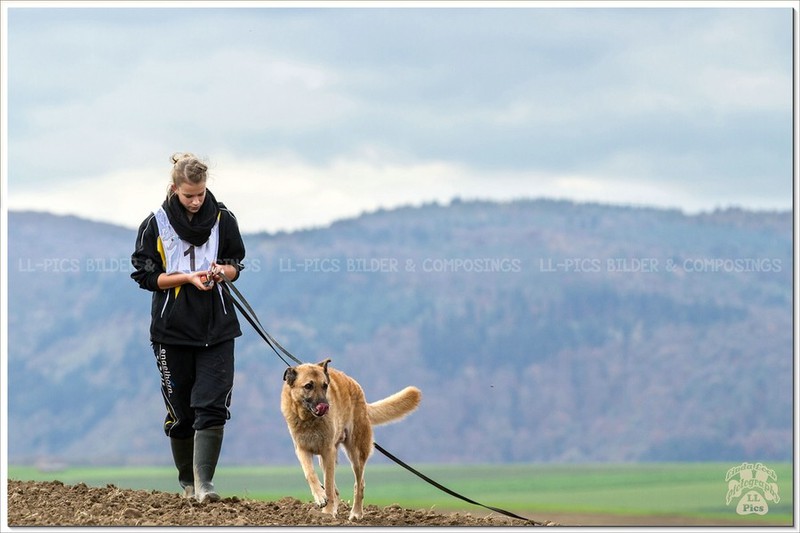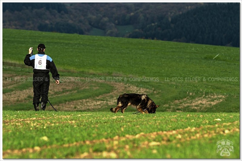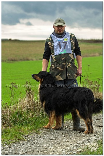 War das Wetter am Samstag nach einem morgendlichen Regenschauer noch warm und schön, so zeigte sich der Sonntag von seiner härtesten und unfreundlichsten Wetterseite. Heftige Orkanböen und starke Regengüsse erschwerten es den Hunden und Hundeführern doch sehr, sodass es schließlich nicht verwunderlich war, dass letzten Endes nur 50% der gestarteten 20 Teilnehmer die Prüfung mit einem bestandenen Ergebnis beenden konnten. Zu den Pechvögeln gehörte leider auch unsere Alexandra. Aber wie sagt man so schön: nach der Prüfung ist vor der Prüfung! Und manchmal ist es einfach nur der olympische Gedanke „dabei sein ist alles“, der uns mit Zuversicht auf den nächsten Wettkampf schauen lässt.